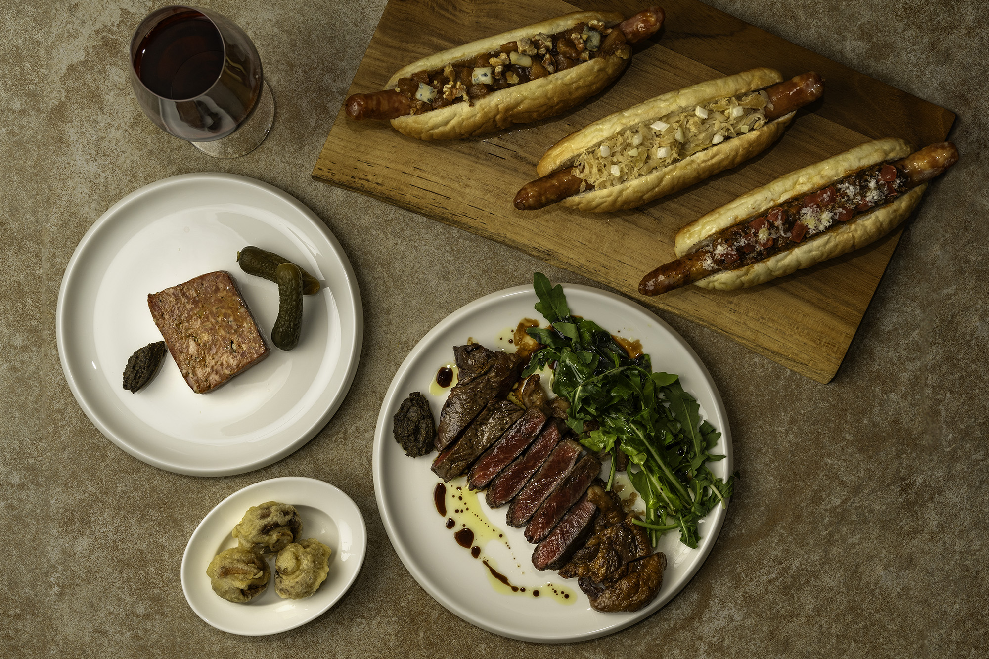 人々が集うコミュニティエリアでもあり、クライアントニーズに応じ様々に変化するイベント&プロモーションスペースとして街の発信拠点を目指して作られました。旬の食材を用いたイタリアンエッセンスが楽しめるグルメホットドッグをメインに、こだわりのナチュラルワインをご提供。その他サラダやパスタ、グラタンなど豊富なアラカルトメニューを取り揃え、多様な使い方をお楽しみください。