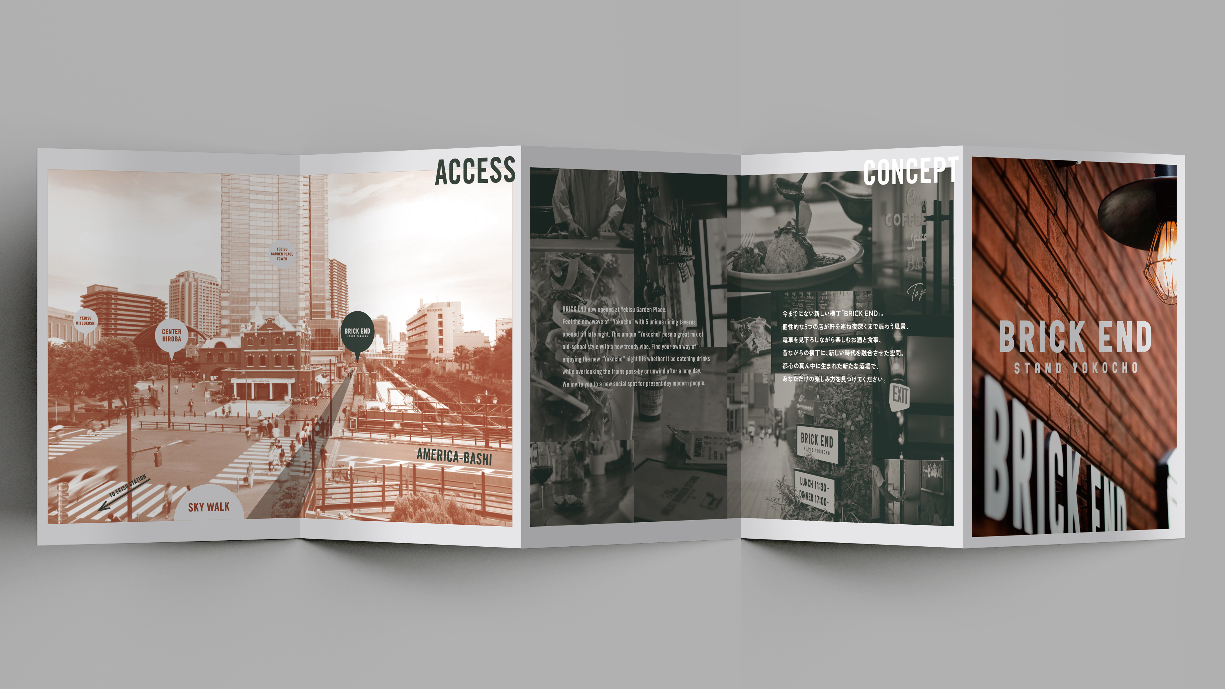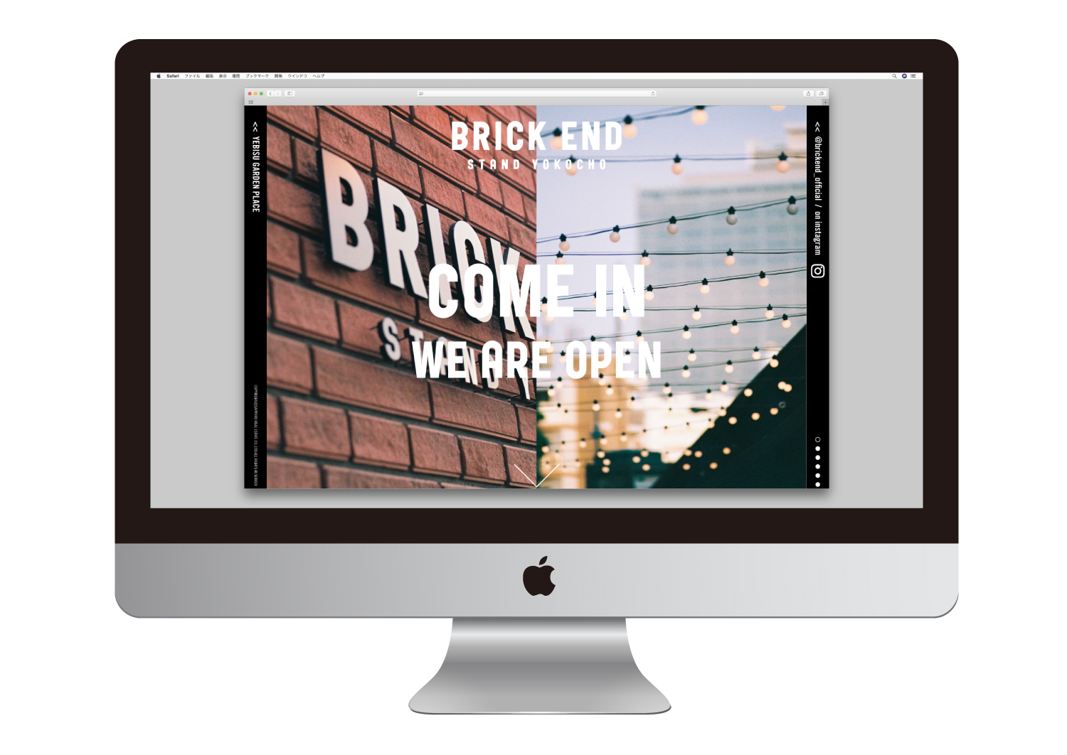 恵比寿のランドマークな商業施設「恵比寿ガーデンプレイス」。この施設の隅の方にこっそりと隠れ家のように存在するのがスタンド横丁「BRICK END」。山手線が一望できるレンガ造りの細長い建物。今まで当施設にはなかった個性的な5軒の飲食店が並び、新しい大人の社交場を提案。