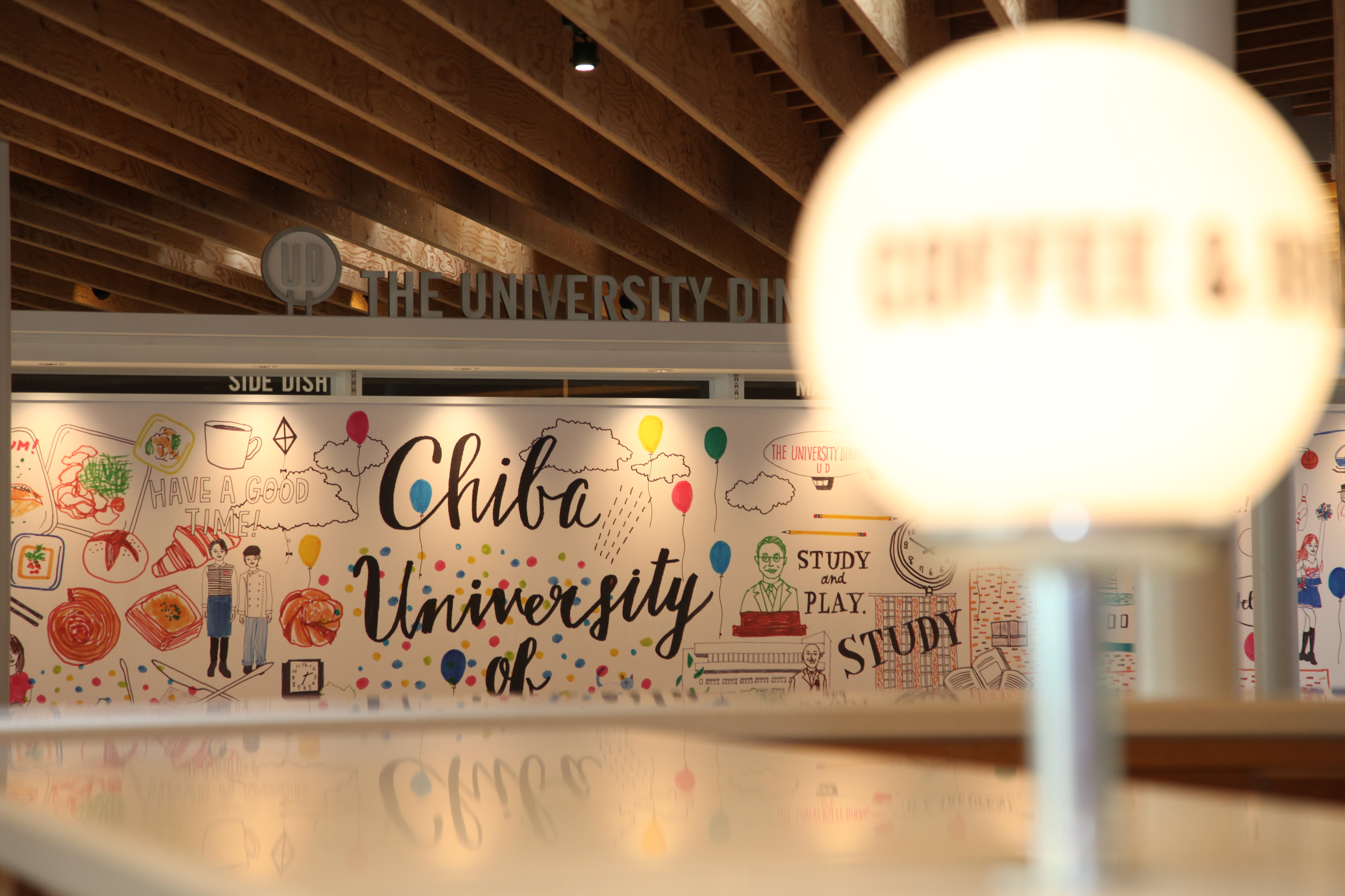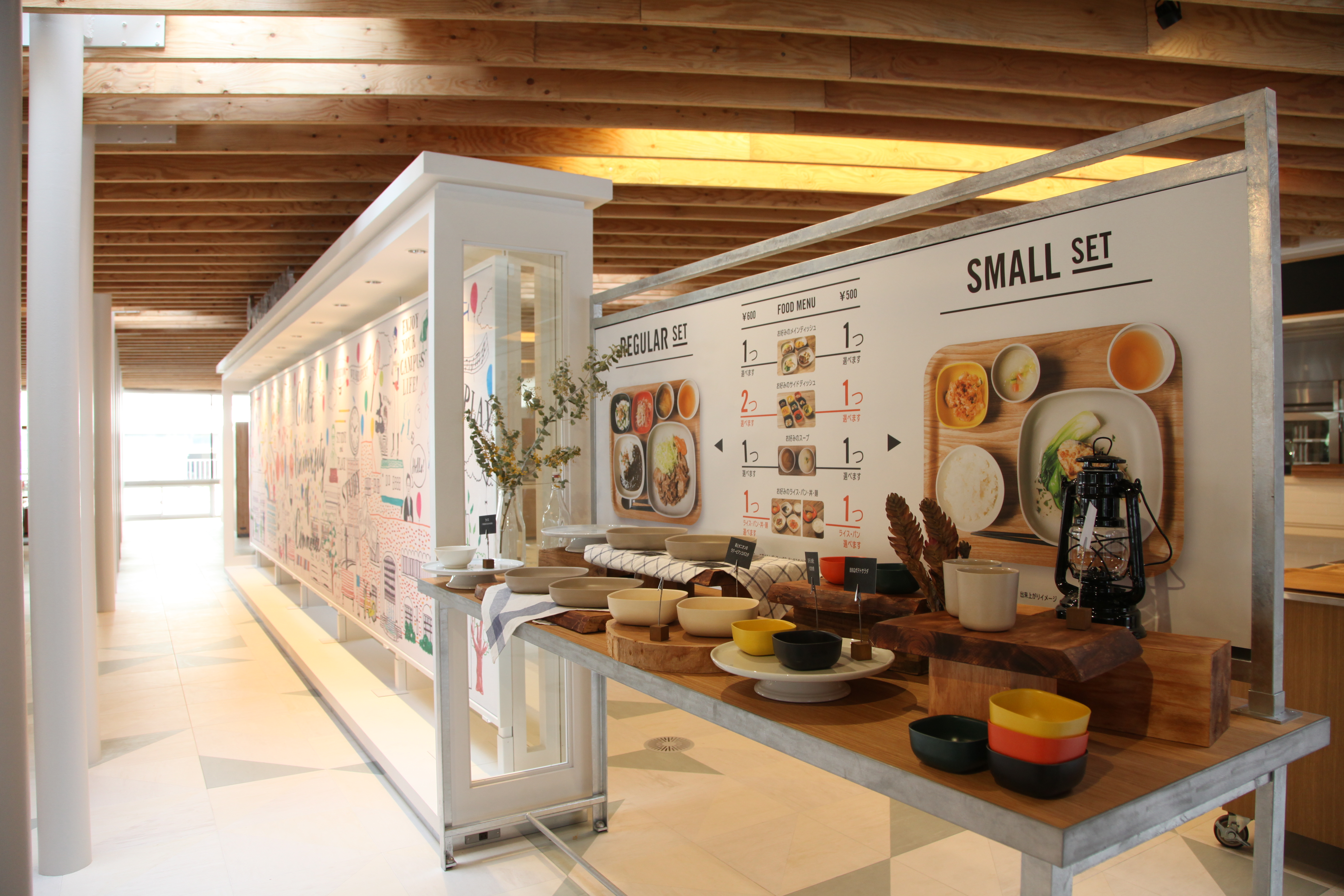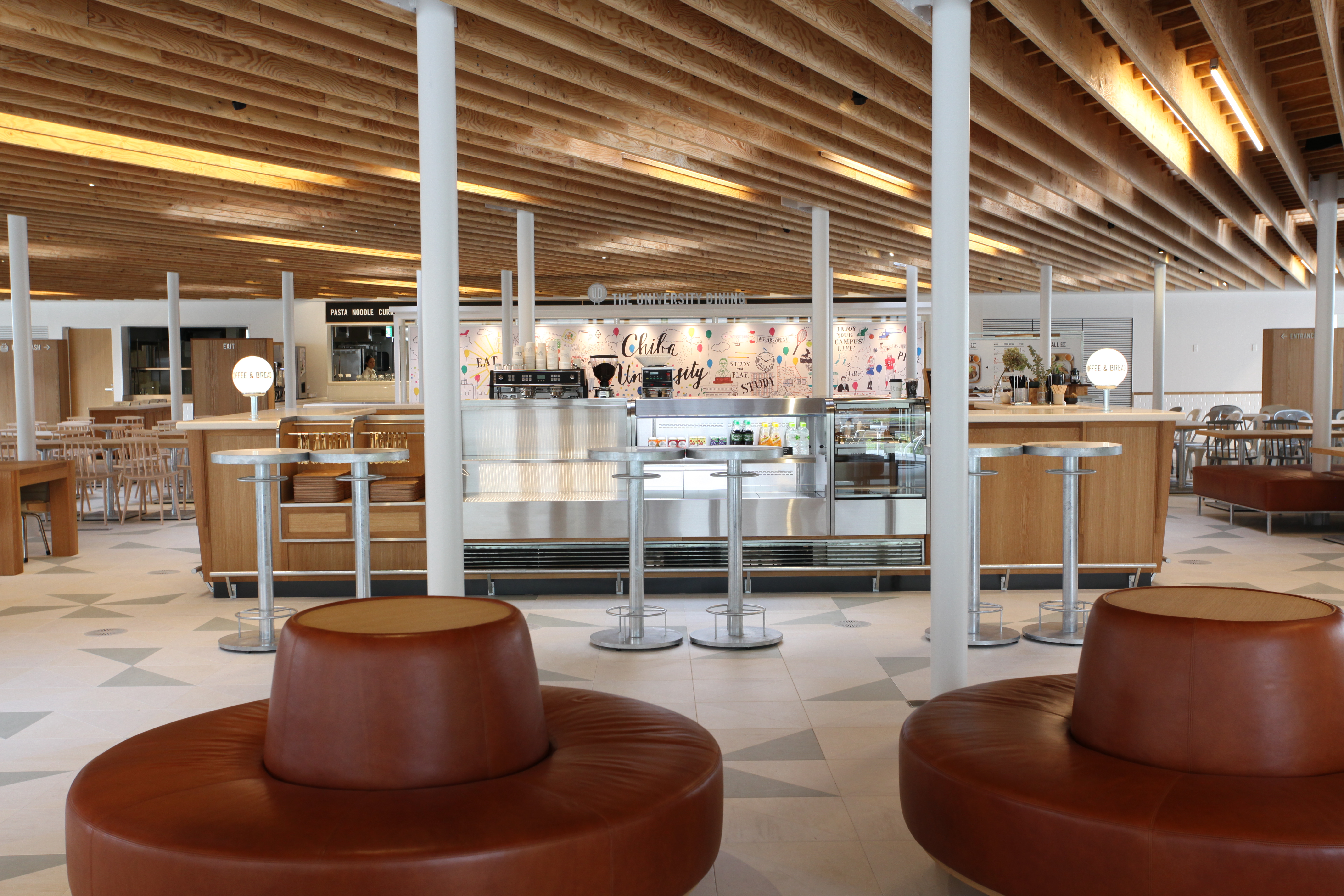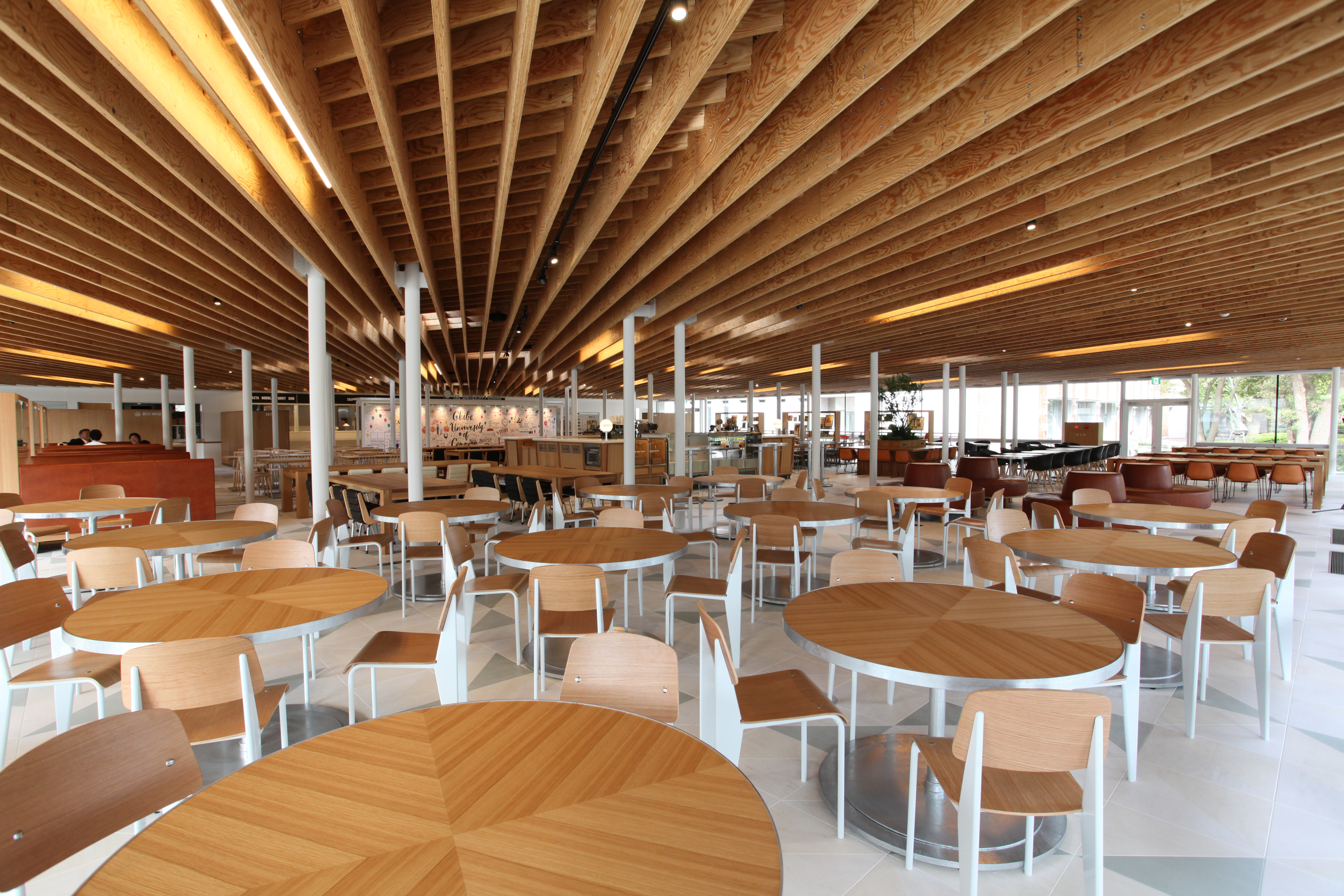 The University DINING」は350席を設置。食事はもちろん授業の空き時間や放課後も、いつでも学生たちが自然と集い、新しい発想が次々と創造されるような環境を提供した学食