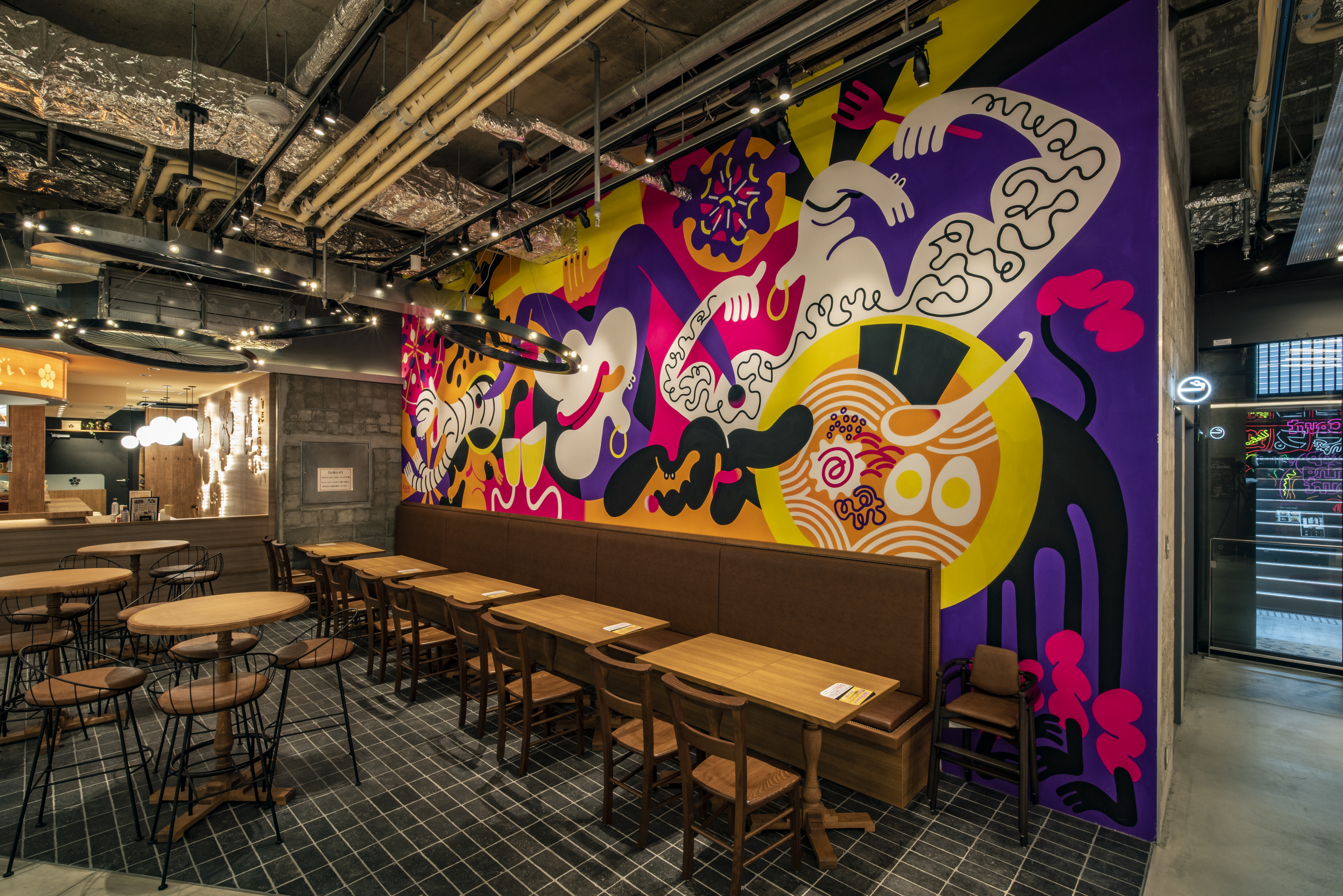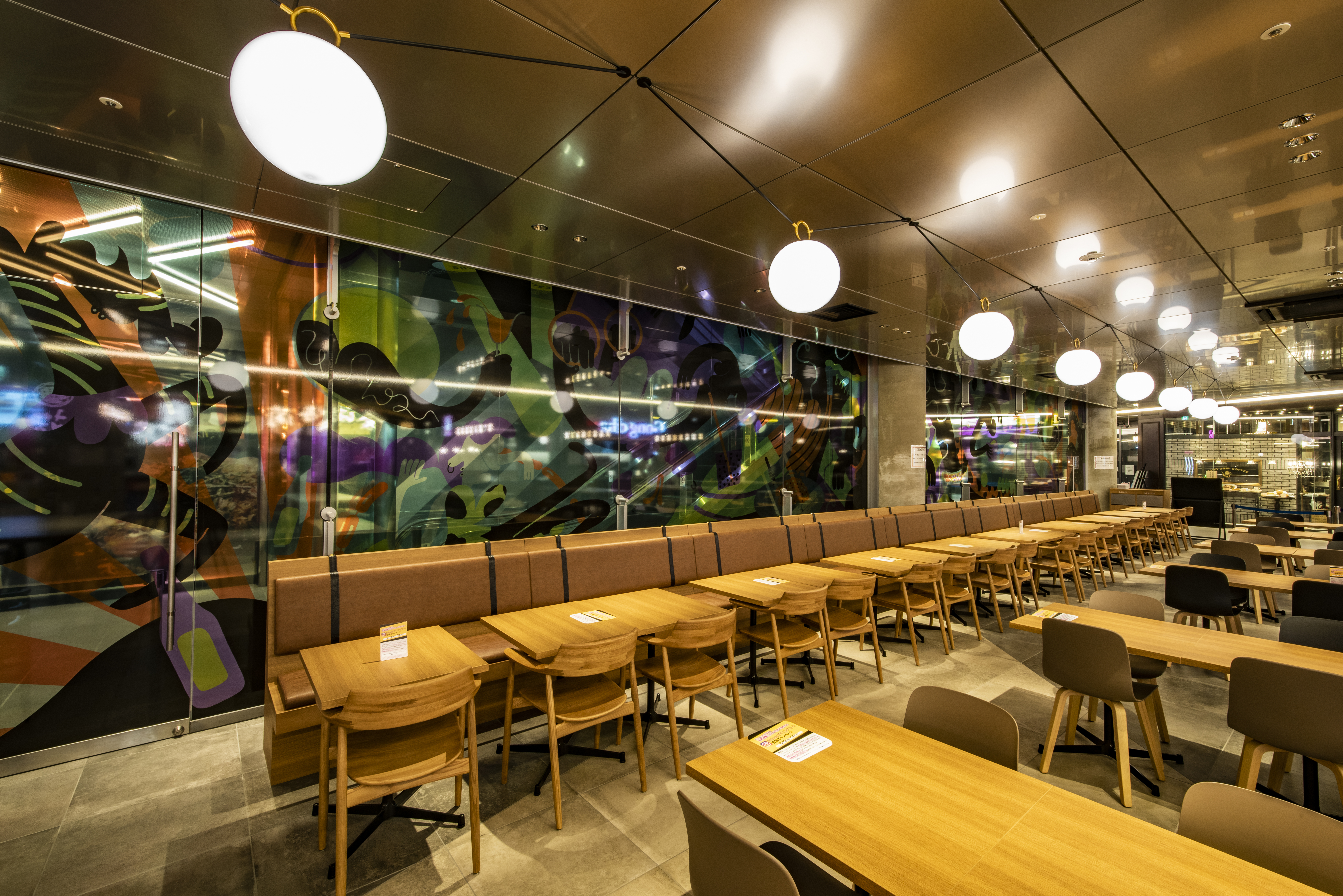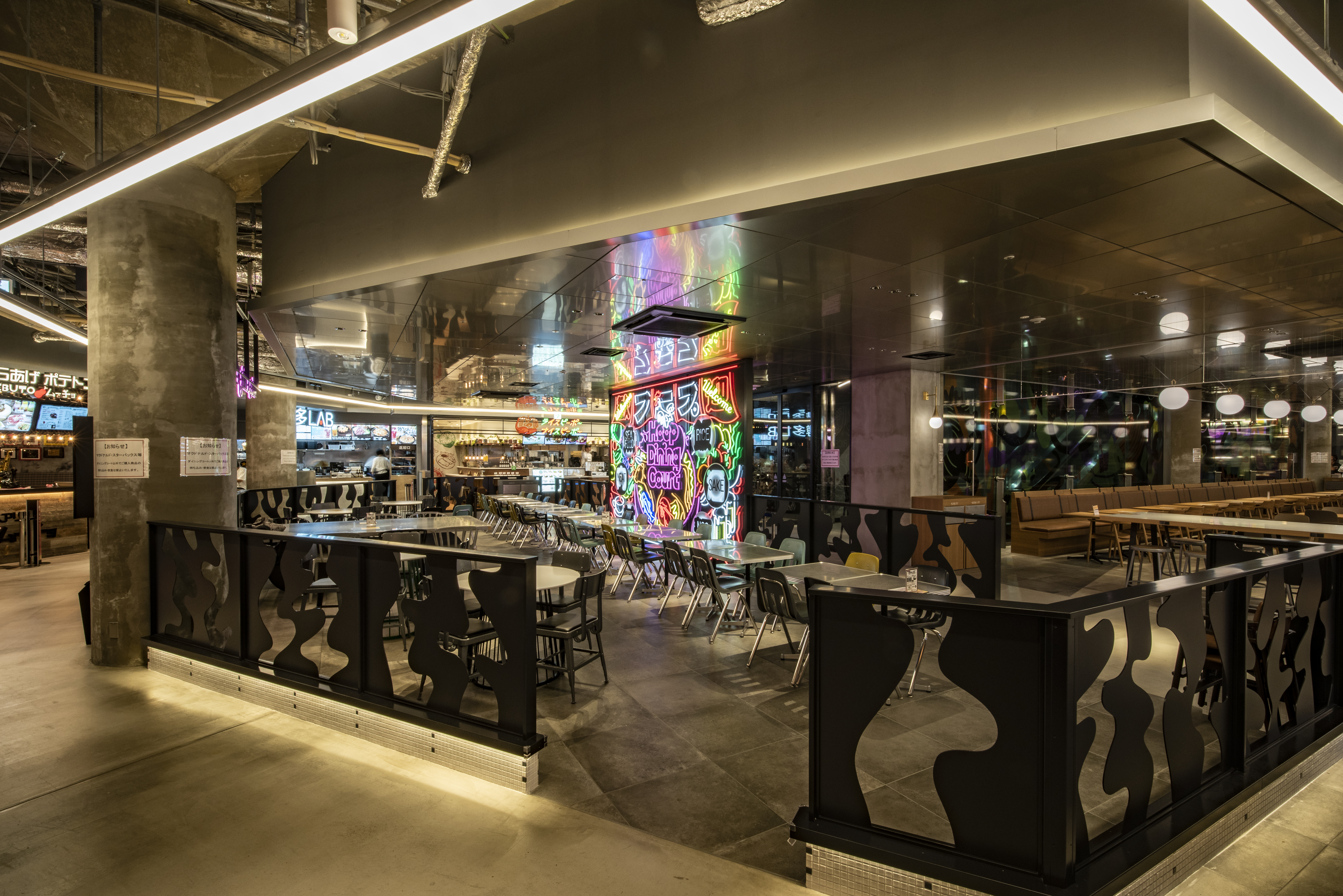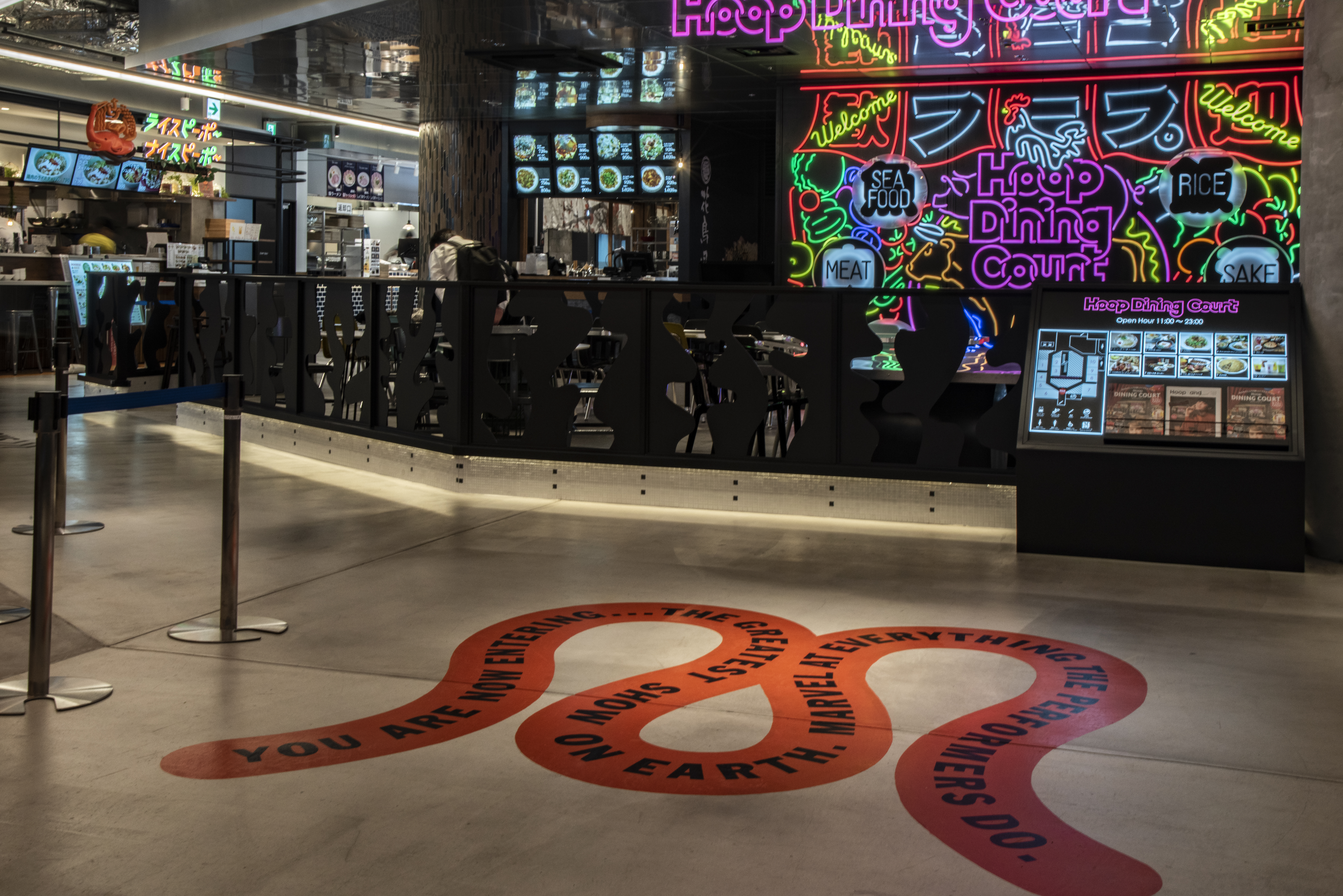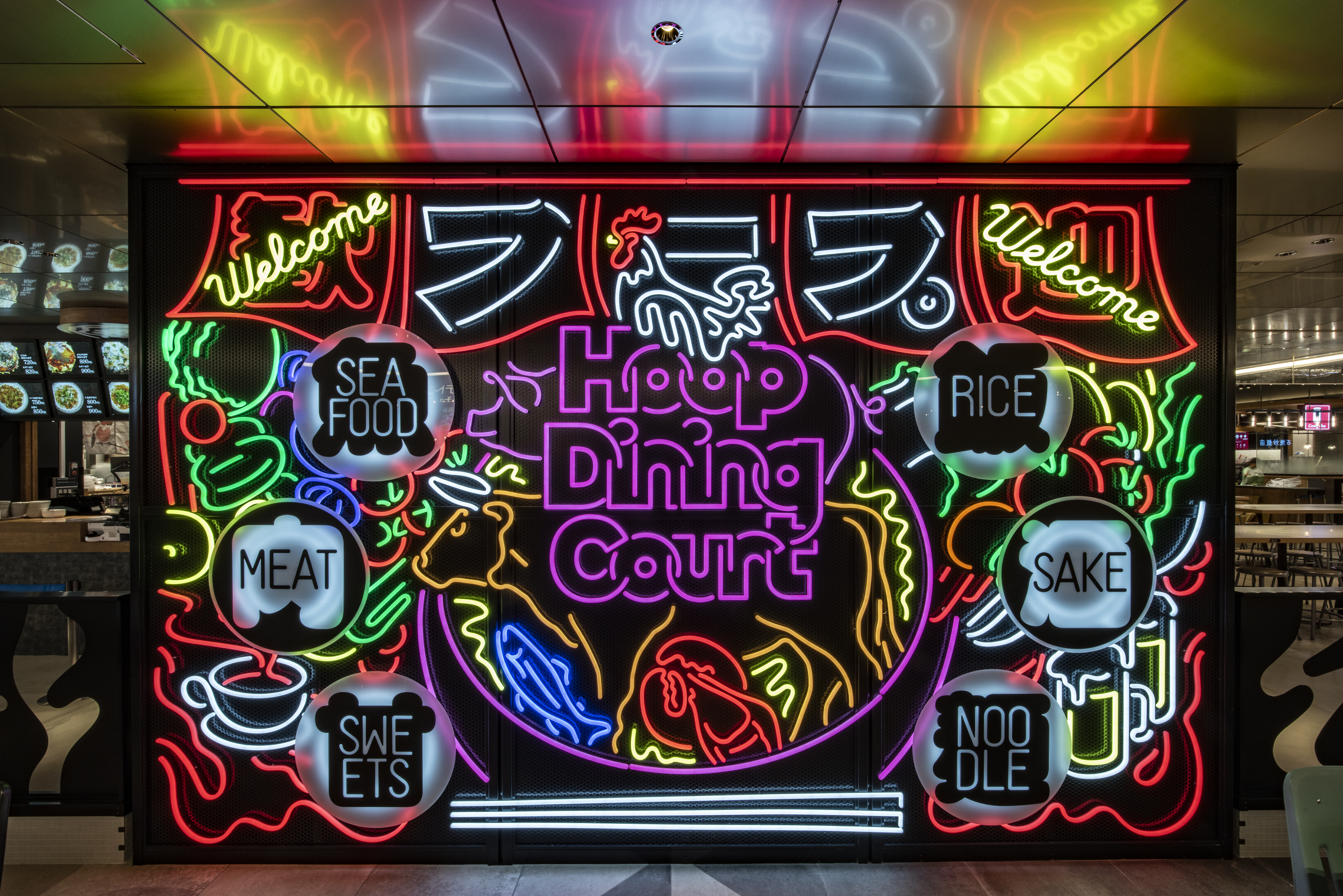 株式会社近鉄百貨店様運営の商業施設「Hoop」のリニューアルプロジェクトです。地下1階ではエリア初となるフードホール業態「Hoop Dining Court」を展開し、「CIRCUS」をコンセプトにアーティストと協業した複数のアートが各所に散りばめられ、楽しみながら食事の時間を過ごせる空間となっています。