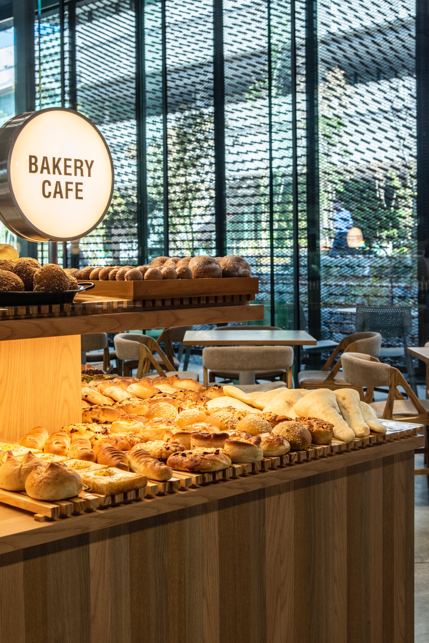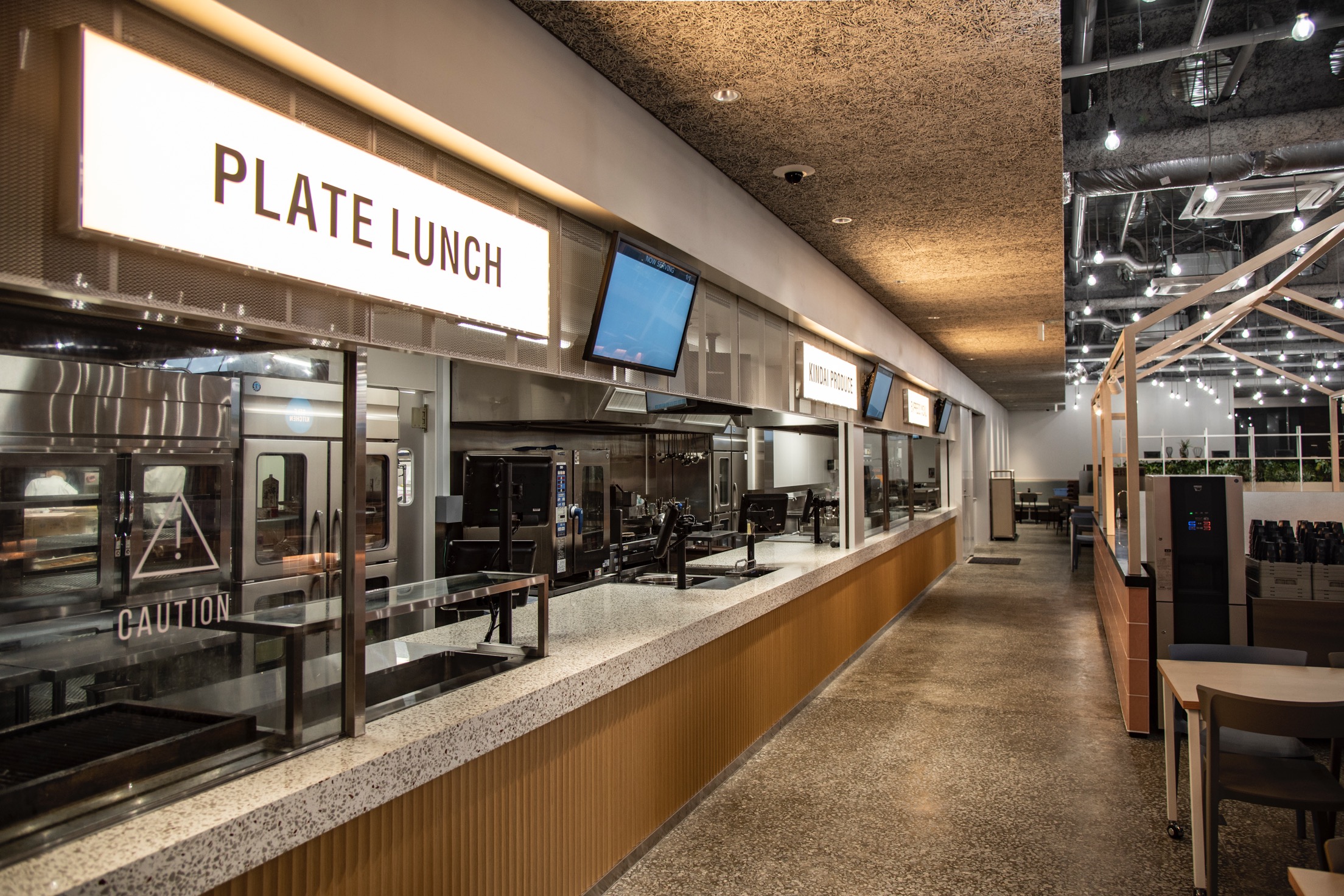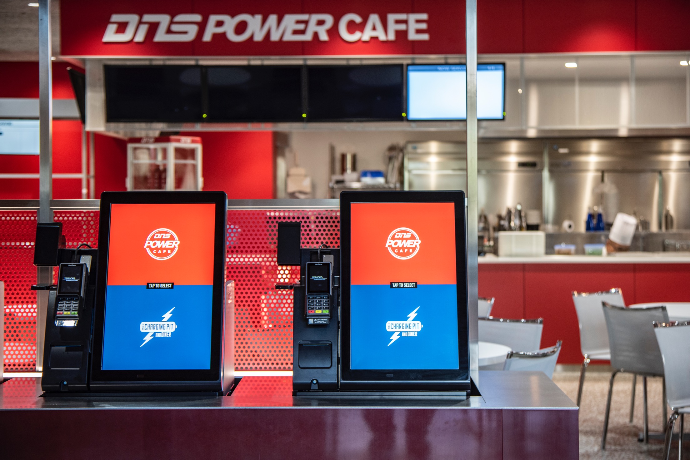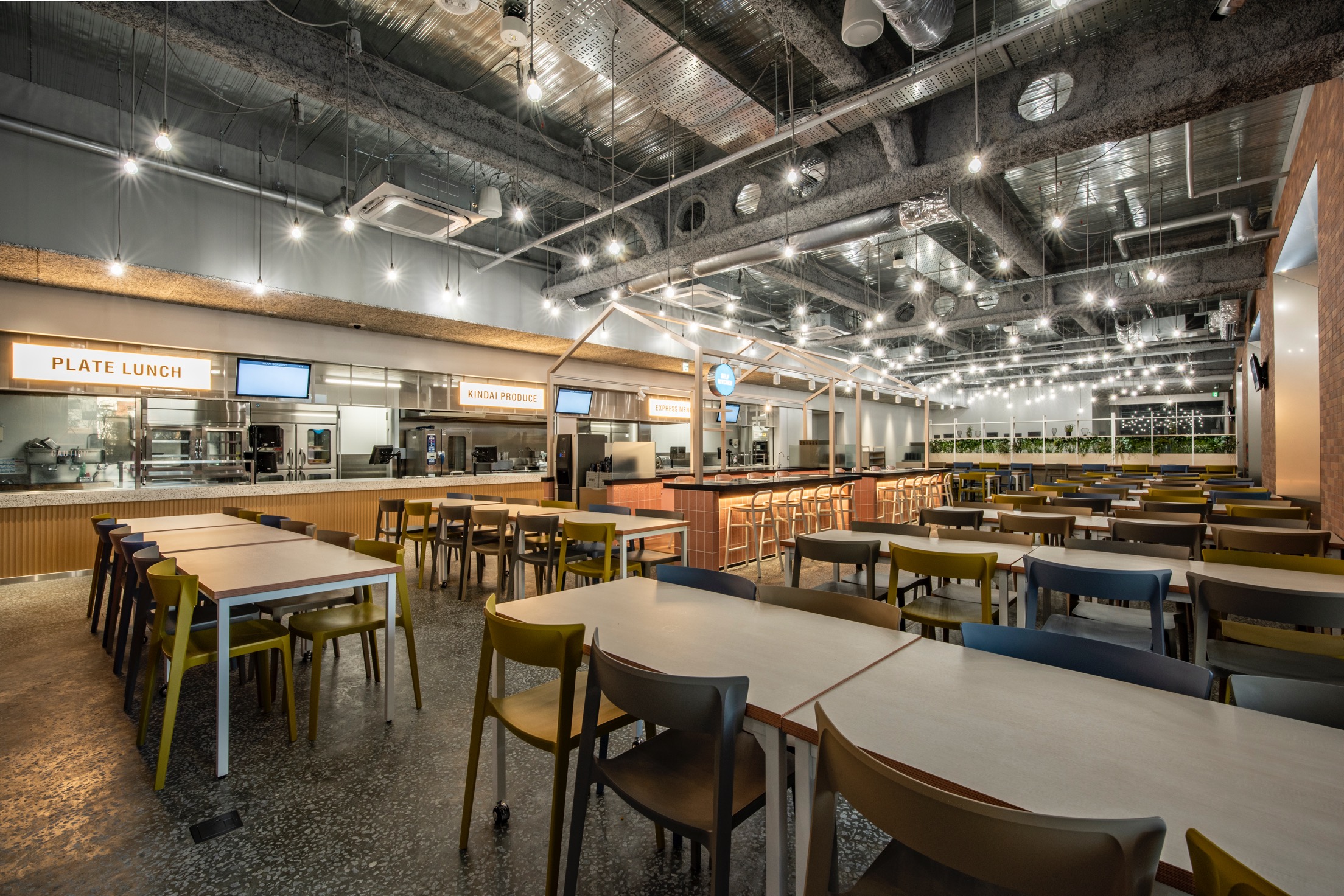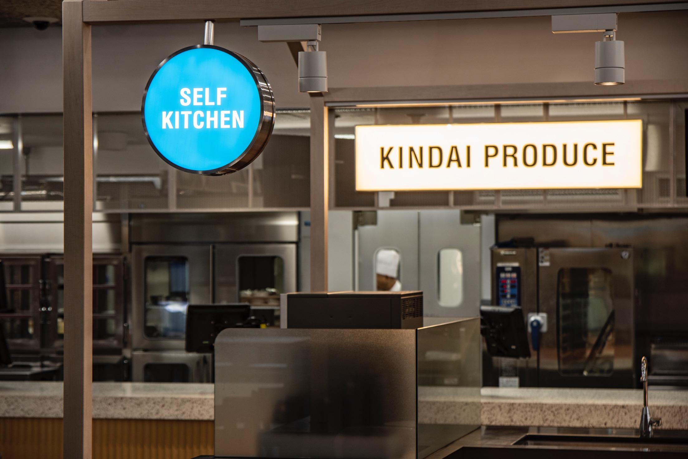 大阪近畿大学のメインとなる学食。スポーツサプリメントブランドDNSによる"アスリートの身体と心のパフォーマンスを整える食事"をコンセプトとしたDNS POWER CAFEを中心に、ベーカリーカフェなどが集合した学食空間。