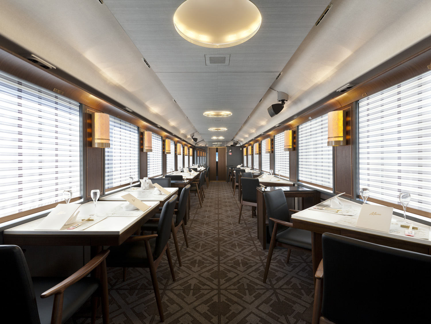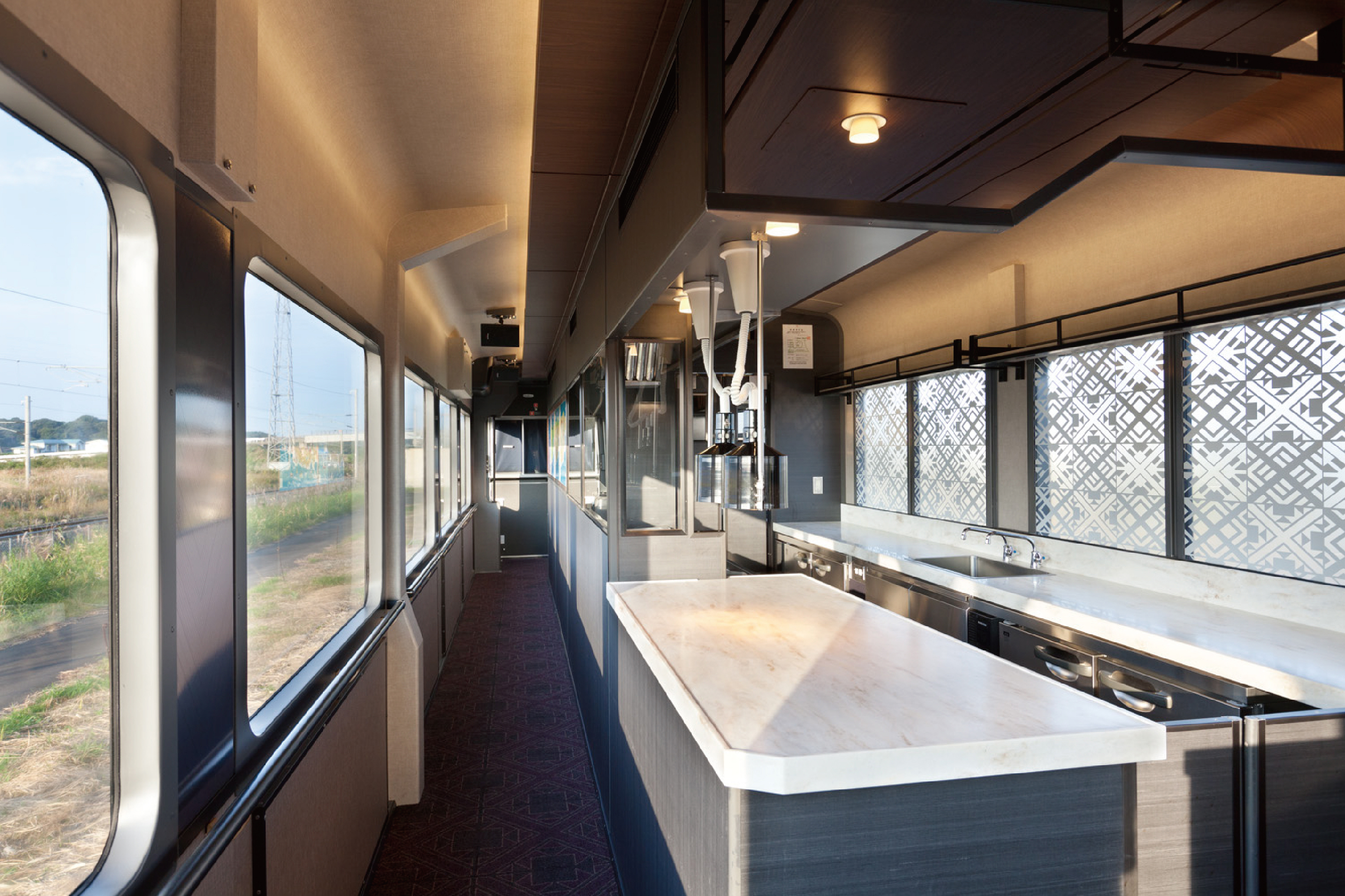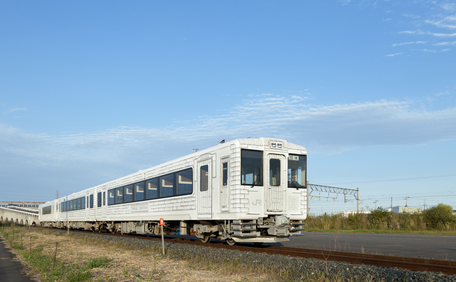 東日本大震災の被害をうけた東北三陸沖を走るフルサービスのレストラン列車。